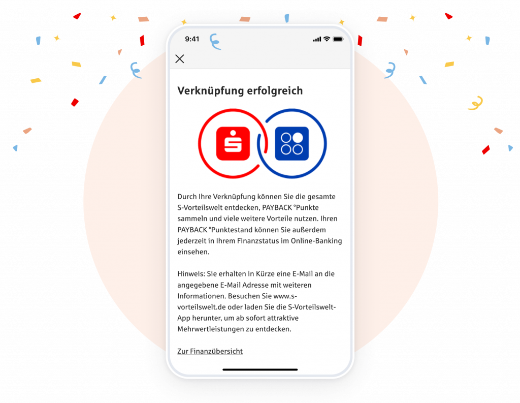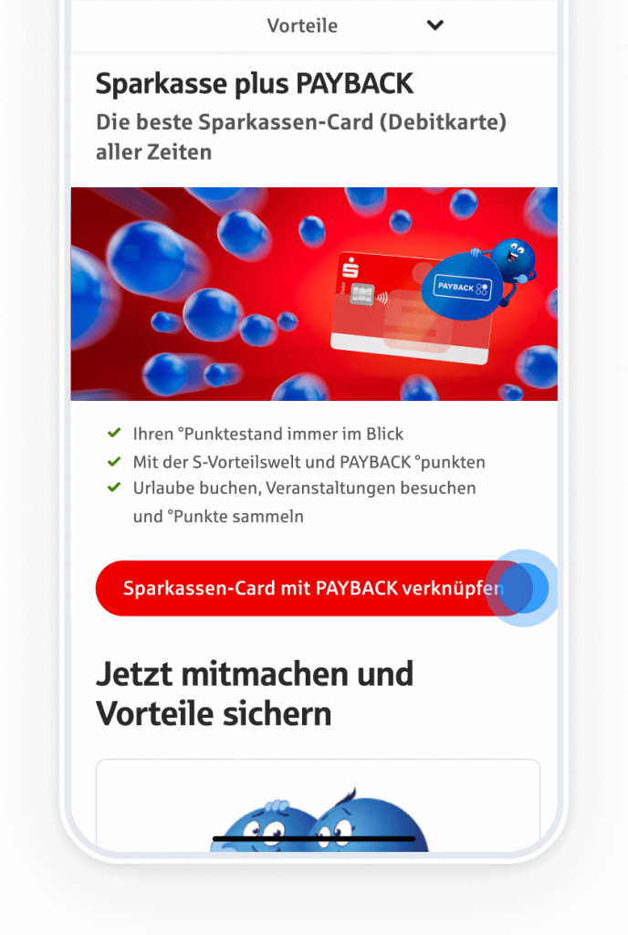 Deine Sparkassen-Card (Debitkarte) ist jetzt mit PAYBACK verbunden – und dein Konto für die S-Vorteilswelt ist startklar. Beim nächsten Login siehst du deinen °Punktestand direkt im Finanzstatus.