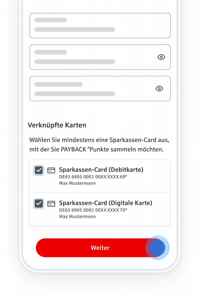 Tippe auf „Sparkassen-Card mit PAYBACK verknüpfen“,