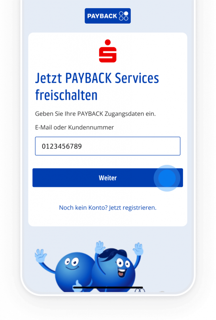 Gebe deine Zugangsdaten zu deinem PAYBACK Konto ein. Nutze dafür Ihre E-Mail-Adresse oder deine Kundennummer. Tippe anschließend auf „Weiter“ und folge den weiteren Schritten.